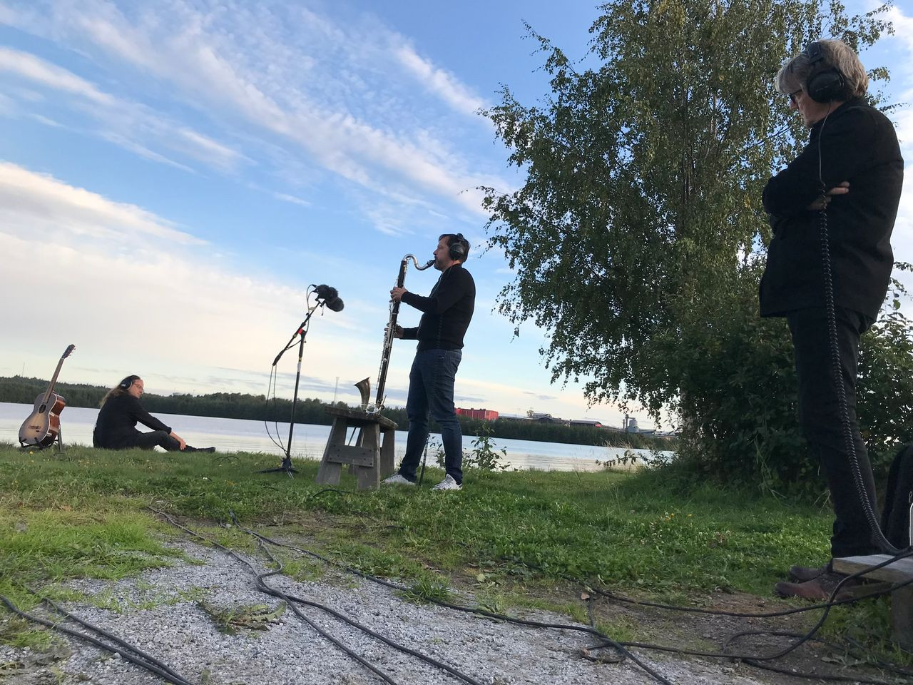 This audio paper seeks to understand the agency of sounds and instruments in designing intra-actions between humans and their environment. It further explores how different mediating technologies influence the ways professional musicians experience place through sound. In addition to the core research group, members of the contemporary music ensemble Norrbotten NEO participated in these site-specific explorations, which were devised as part of the ecological urban sound art project Invisible Sounds. Through a long-term collaborative artistic process, described in the audio paper, an hour-long composition titled Sounds by Water and Trees was produced (Hultqvist et al., 2024).